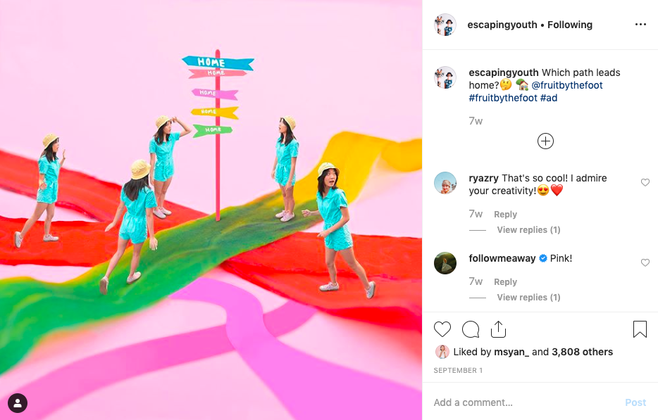 The creatives you work with don't even have to be famous to bring huge value to your brand. They just need to have a style that would suit your existing brand or take it to another level. At the same time, some creatives do accumulate a large following because of their unique artistic skills. Check out one of our favorite creatives, @escapingyouth, whose content is always original and eye-catching.