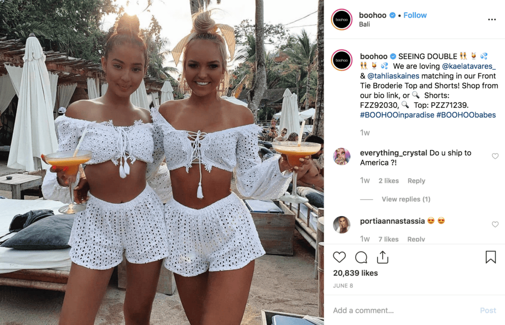 Other brands are taking a page out of Revolve’s playbook by inviting influencers on lavish getaways. Last year, Boohoo jetted off to Mexico with their brand ambassadors to promote their spring break collection. More recently, Shopbop escaped to Lisbon and Lake Como with a handful of fashion influencers, who strutted around in the brand’s trendy pieces and covered the euphoric vacation in real time on social media.