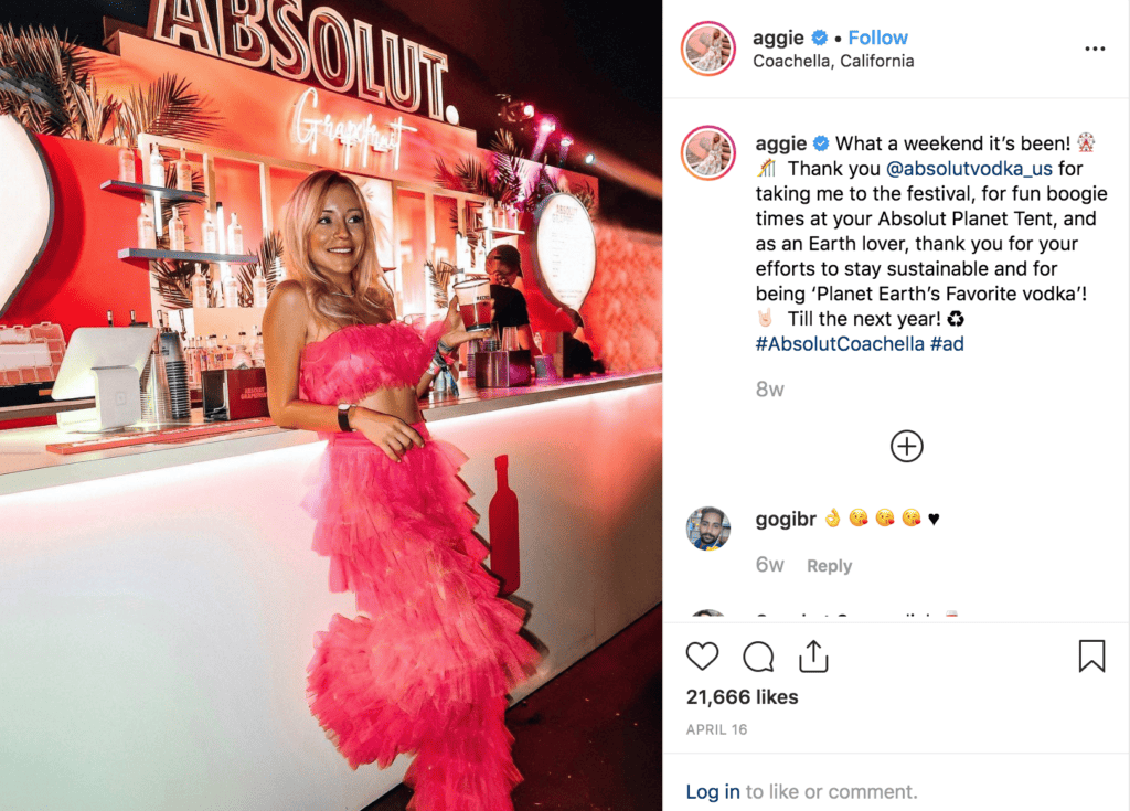 See how Absolut Vodka was able to make a splash at Coachella this year by flying out a handful of influencers to the festival. Of course, they were able to do so because they worked with influencers who fit naturally with the brand.