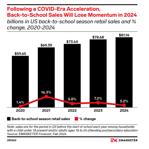 While the growth rate is slowing down, analysts predict back-to-school sales will still increase to $81 billion this year, up from $78 billion in 2023.