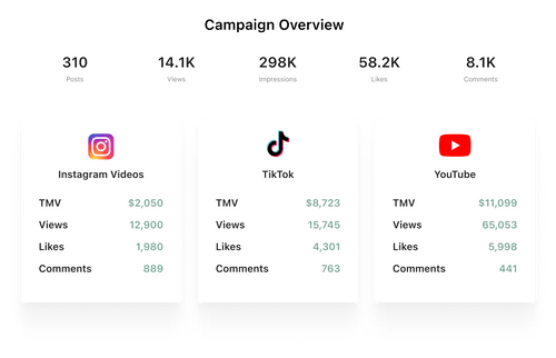 Measuring the impact of your influencer marketing campaigns is dependent on your business goals. For example, if your brand is new to the market, then you’ll want to track the growth of your brand awareness. This requires visibility of engagement metrics like follows, impressions, and mentions over time. If you are a well established brand, you will be in a better position to look solely at direct sales.