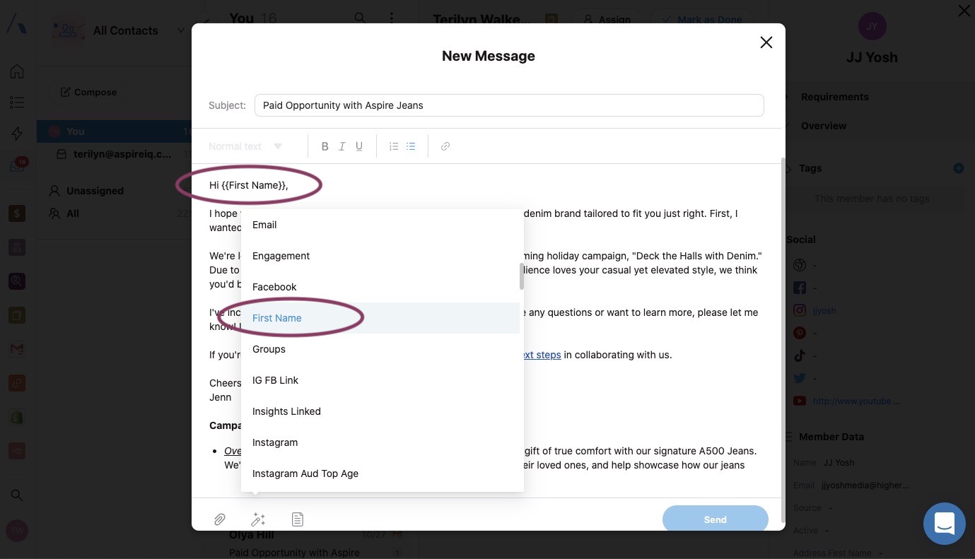 On Aspire, you can easily automate some of the personalization using tags, as shown below. With the magic tool, you can turn a personalized token like {{First Name}} into each influencer’s name with ease.