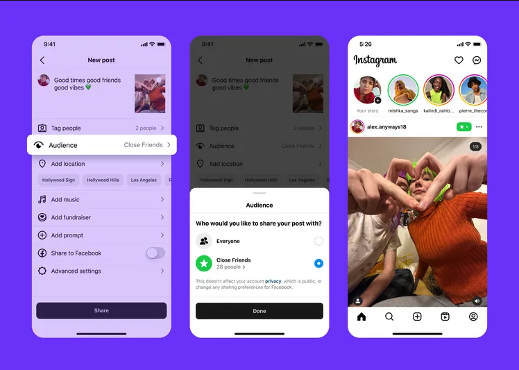 In 2018, Instagram introduced the ‘Close Friends’ feature as a way to share Stories with a smaller, more intimate group of friends. Now, Instagram is expanding on this existing feature to feed posts and Reels, allowing you to share even more content to a select group of individuals that you choose to add to your Close Friends list. This update also allows users to tailor the visibility of each post, providing a more personalized and selective sharing experience on the platform.