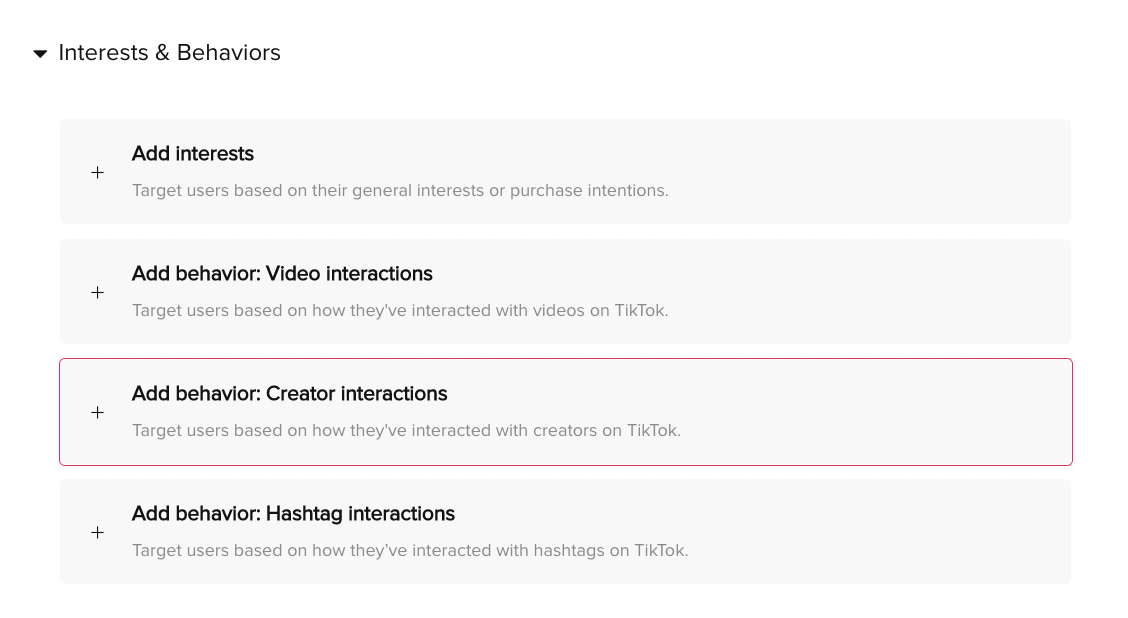 It pays to advertise to as broad an audience as possible on TikTok. With the right post, at the right time, every user has the potential to go viral, so the platform is particularly effective as a top-of-the-funnel advertising channel. Targeting a broad audience also allows the TikTok algorithm to learn which demographics respond best to your ad content, so that you can narrow down your targeting later as your brand evolves.
