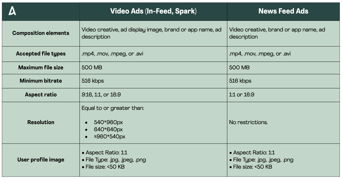 When you’re creating your TikTok ads, you’ll need to stick to the following specifications: