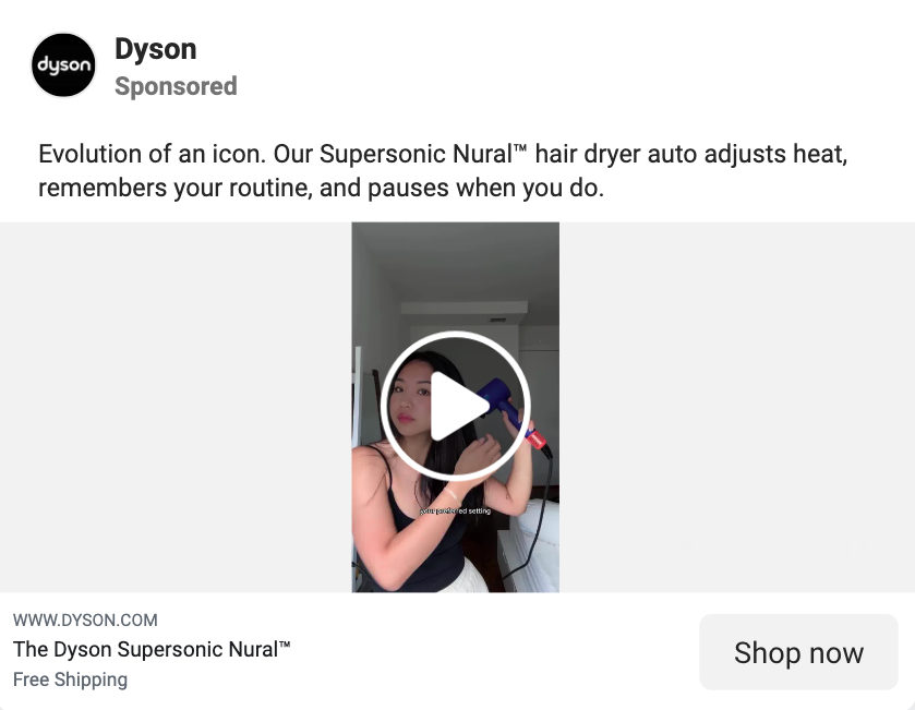 Then, Dyson repurposed the influencer-generated content for their paid ads and brand-owned channels. This way, the brand was able to better blend its content on social media and more easily capture the attention of their desired audience.