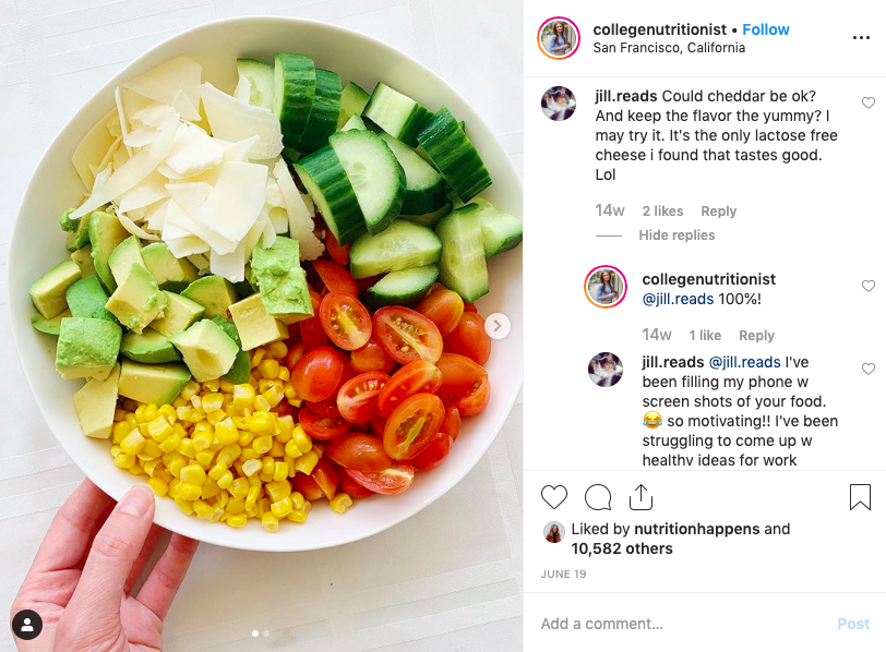 Take a look at Rachel Paul — perhaps better known as @collegenutritionist — who dishes out well-balanced meal prep ideas everyday. Not only is she a Registered Dietician, but she also has a PhD in Behavioral Nutrition. Unsurprisingly, her Instagram and blog are flooded by questions about nutrition and healthy recipes.