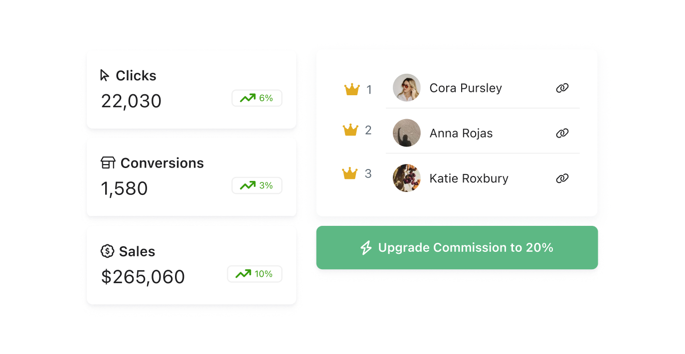Monitor sales, engagement, clicks, content, and posting frequency in robust visual dashboards. Reward top performers, and nurture new VIP customers to rise to the top.