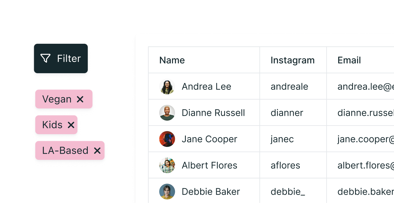 VIP creator info. Keep track of birthdays, addresses, and more in your influencer CRM.