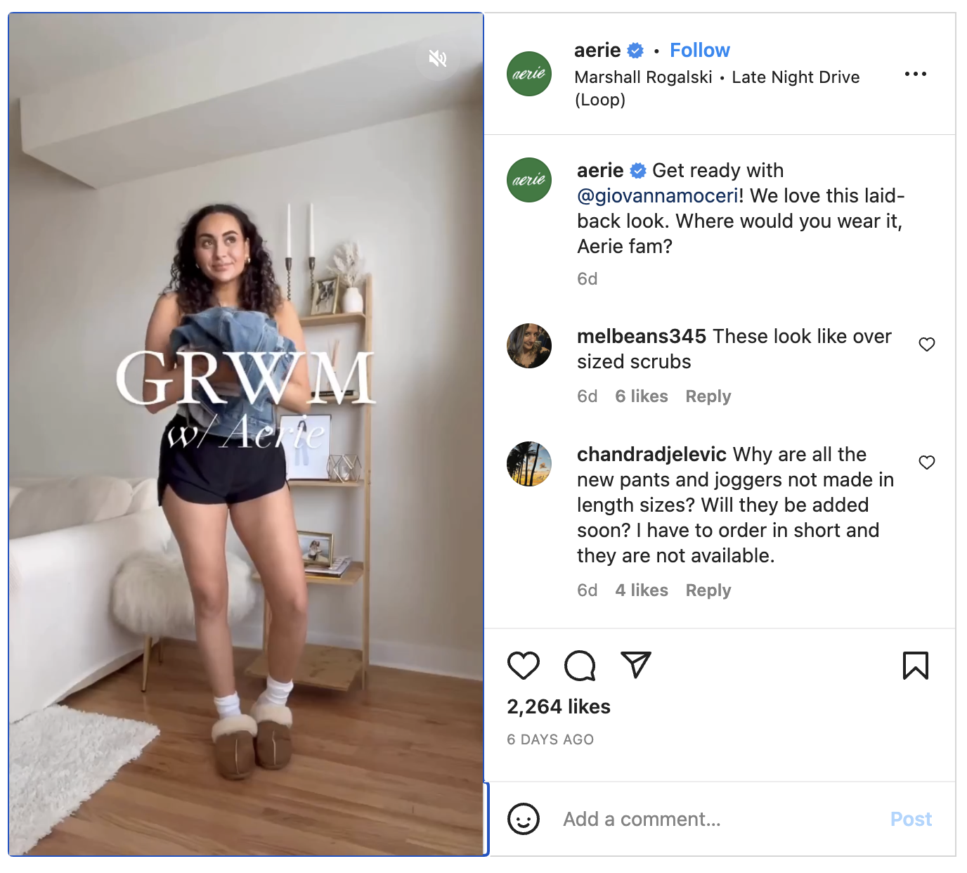 Targeting smaller online audiences with influencer-generated content allows Aerie to build trust and awareness within its target audience, as the message is coming from a voice they can relate to, feeling more like a recommendation from a friend.