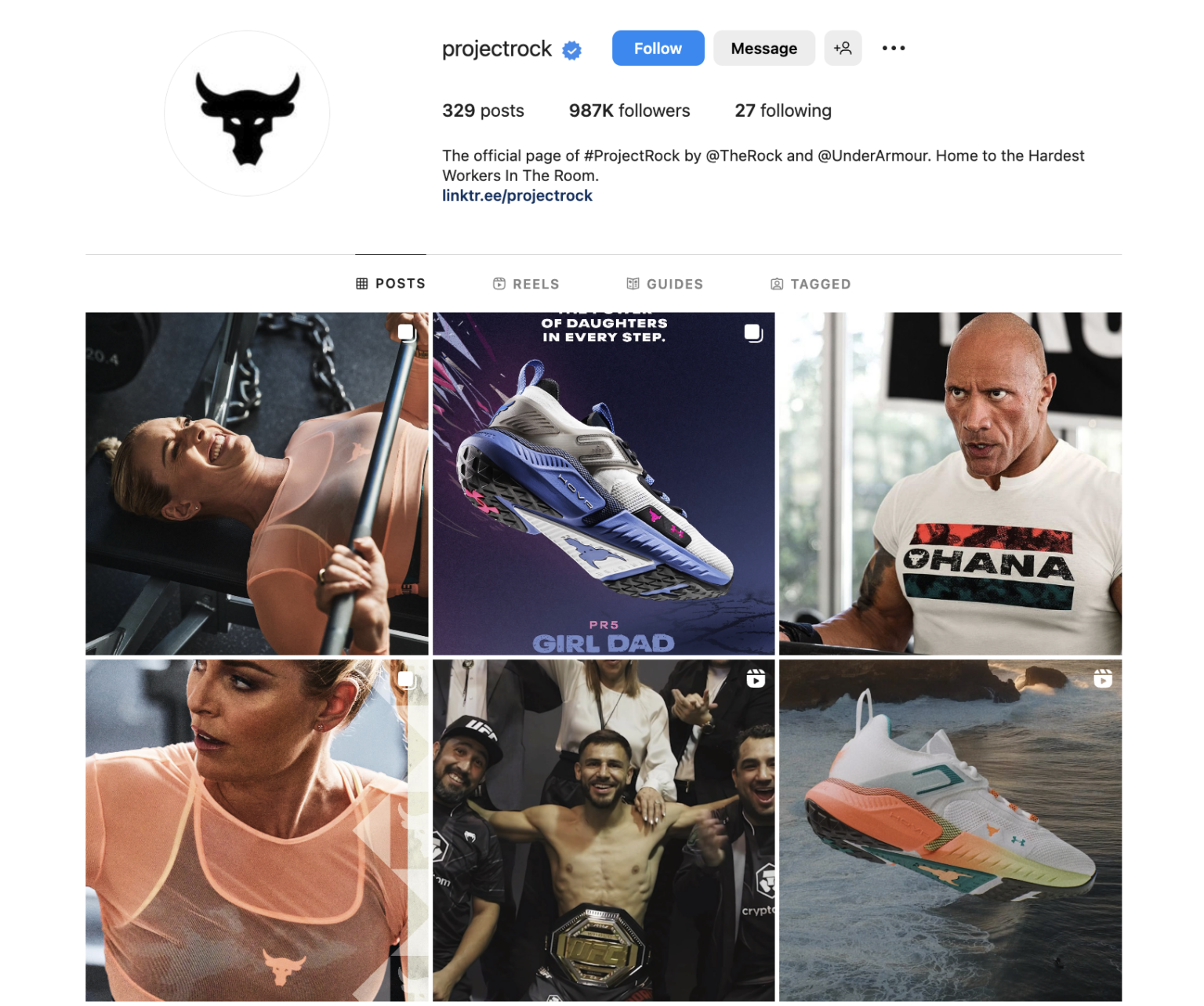 Alternatively, Under Armour’s partnership with The Rock targets a much wider community of fitness enthusiasts (and not to mention Dwayne Johnson fans), with a multi-faceted campaign that spans entire new websites, Instagram channels, and product lines.