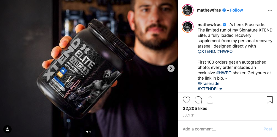 For example, leading sports nutrition company Nutrabolt worked with professional athlete Mat Fraser to co-create a supplement called Fraserade XTEND Elite. The brand gave Mat the freedom to pick out the formula, the flavor, and even the name. Due to Mat’s fitness expertise and, of course, his authentic love of the brand, the partnership led to the highest-grossing sales day on officialXTEND.com.