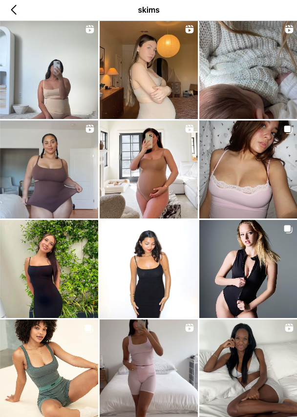 Influencers are crucial for generating user-generated content (UGC) that drives customer retention. By sharing their content on your brand’s organic social channels, you’re able to provide relatable content that resonates better with your audience than brand-directed content. Plus, because you have access to a diverse array of content from influencers, you’re able to keep up a dynamic social presence that keeps customers engaged. Just take a look at SKIMS, whose social media is mostly fueled by UGC from its community.