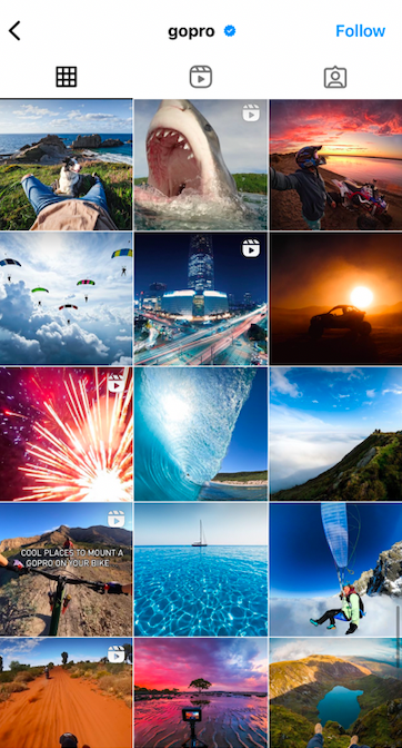 UGC is also diverse, giving you a wide variety of content to use when targeting different audiences. By doing so, the content your brand presents can truly resonate with all of your different audience segments. For instance, GoPro repurposed IGC on their Instagram, showcasing the many different occasions and ways people can utilize their product — whether it’s to capture your skydiving experience or your underwater adventure.