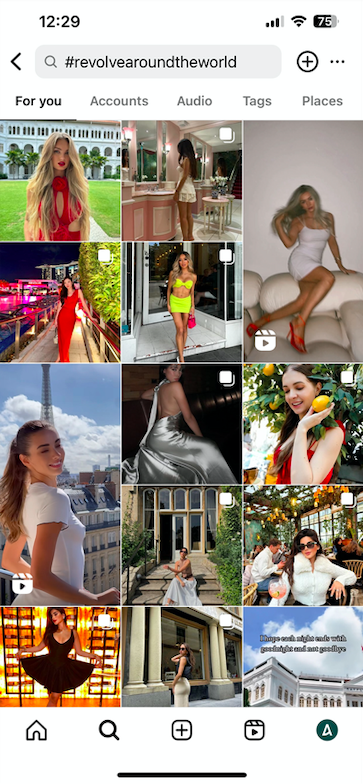Branded hashtags, such as Revolve’s #RevolveAroundTheWord or Fabletics’ #MyFabletics, are also a great way to build a community around your brand. These tags can help with brand awareness — and as an added bonus, allow you to easily source UGC.