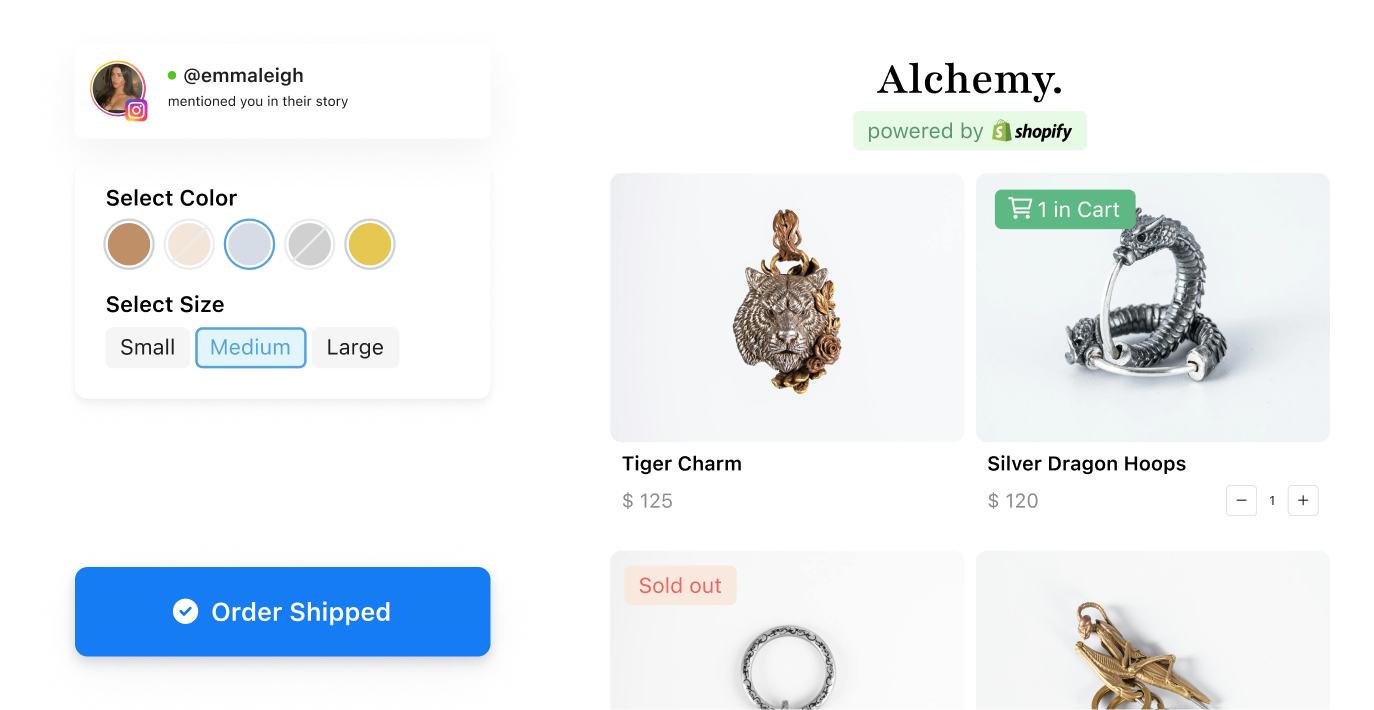 Quickly import products, organize collections, collect shipping details, and track order status - all in one place.