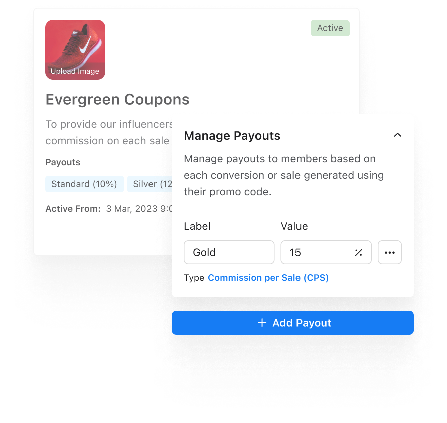- Multiple Payout Options: Define multiple commission payout options within an offer and easily move creators from one payout level to another.