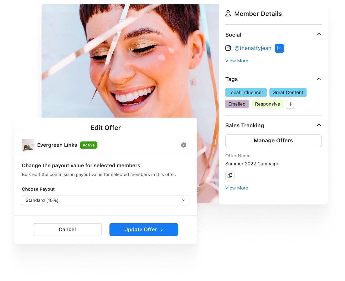 - Ability to Edit Offers per Creator: Edit the commission payout value and other settings for a single member or set of members.